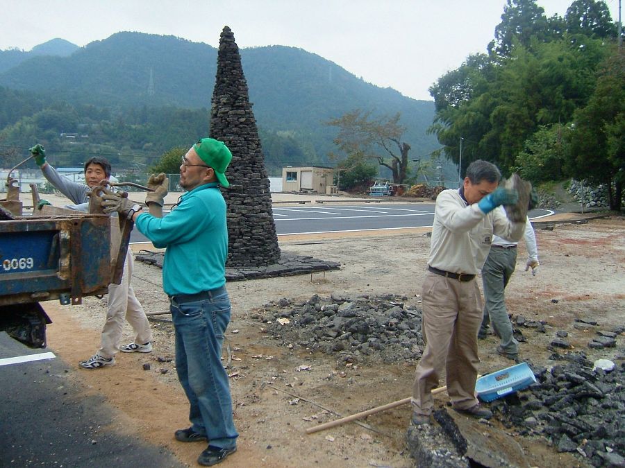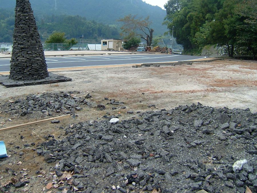 まずは、「キャメロンさんの塔」の作品を創った後の、アスファルトの瓦礫(がれき)の片付け作業から入りました