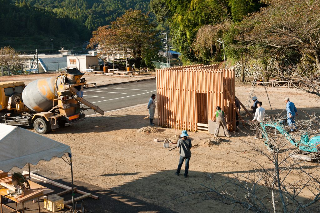 私は、日本各地を旅して、人々の温かいおもてなしや自然への認識、また、自然素材の香りや様々な表情を持つ建造物に感銘を受けました。ただ、旅行者としての私が望んでいた、周りの景色を楽しみながら、休める公共の場所はあまり見当たりませんでした。そこで、神山では、日本建築のプライベートな空間をヒントにし、みんなが寄り集まって、腰を下ろし、くつろぎながら、美しい自然風景を堪能できるような公共の空間を作りたいと考えました。地元産の杉や青石を使っており、耳を澄ませば、透過性のある杉の壁に組み込まれたエオリアン・ハープ(風のハープ)を通して、神山の風の響きにふれることもできます。境界(内と外)は、神山に根付く、旅人や遍路をもてなすお接待の精神を形にした作品です。 是非この作品を体感し、楽しんで下さい。