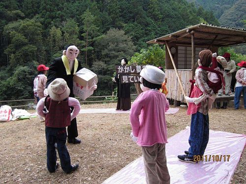 私がまだ、高校生だった頃、 姉の結婚式がこんな風でした。 本物の「うちかけ」・「留め袖」。 どなたのご提供でしょう・・。 かかしも華やかでお慶びのことと存じます。(笑) 「かかしキャラ」も可愛くて良いです。 女の子のかかし・・・誰かに似てる。 ありゃ!喜代美さまでしたか。 (し・・・し・・失礼致しました)(笑)