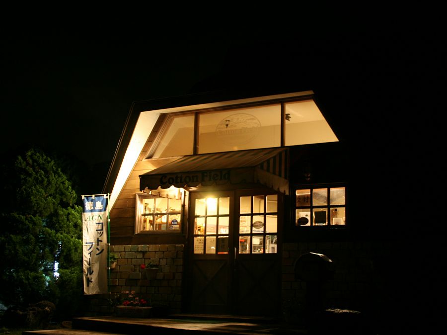 「かなり飛んびょるでよ!」という話を聞き、午後8時前、向かった先は森昌槻さん経営のコットンフィールド(写真上)。