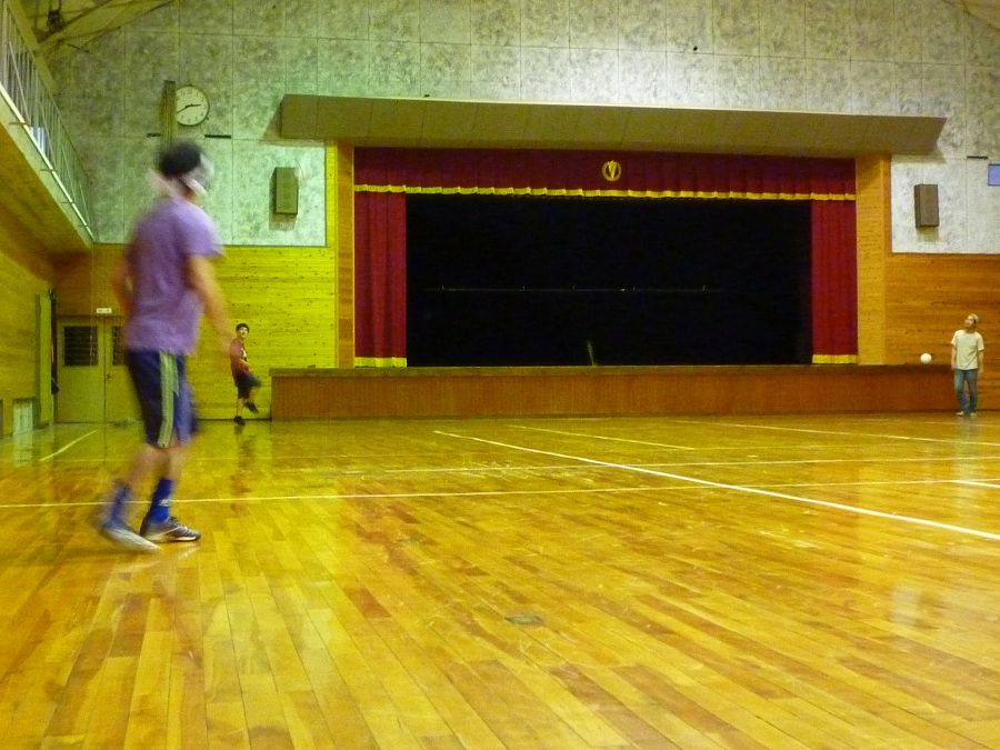 場所は神山町民体育館。入り口のハイテクな?オートロックに一同「おーっ!」と驚きつつ、中に入ると、久しぶりの体育館の姿とどこか懐かしい匂いにまたまた「お~っ…」っと。