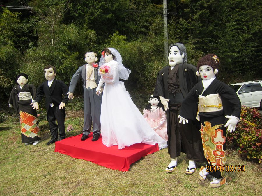 久しぶりに投稿します。 人間の一生というテーマで3月28日、国道沿いに23体の案山子を設置しました。