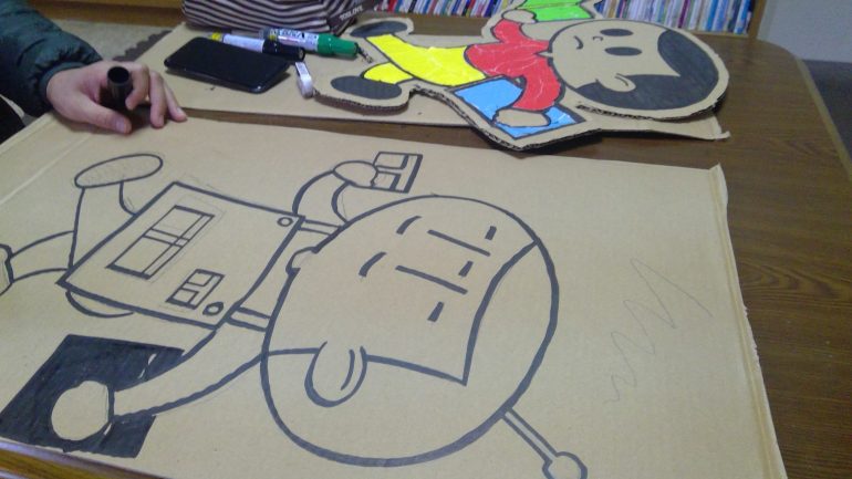 ほんのひろばは、絵本を持ち込みます。靴を脱いで、小さいお子さんでも居られるスペースを作ります。おいしいグルメやワークショップを体験した後は、ほっと一息お立ち寄りください。