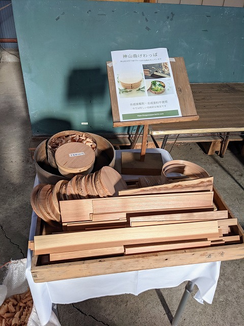 曲げわっぱ作家近藤奈央さんの、曲げわっぱの杉材コーナーです。
