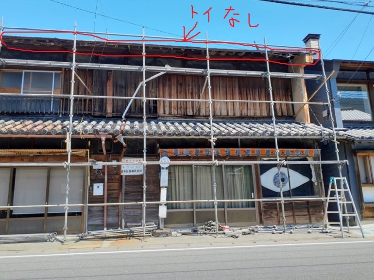 その上、なんと屋根を見れば、豆千代さんの店舗との境。