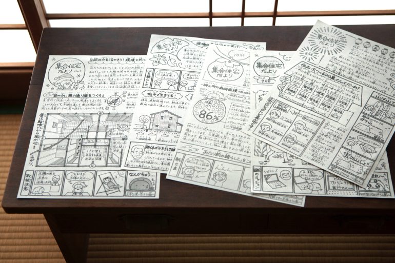 赤尾さんは、手書きでプロジェクトを解説する「集合住宅だより」を2017年8月から1年間12回発行。町民全世帯に配布しました。