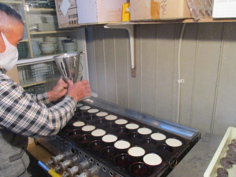 「粟飯原康史」様が「大判焼き」を焼いてくれています。