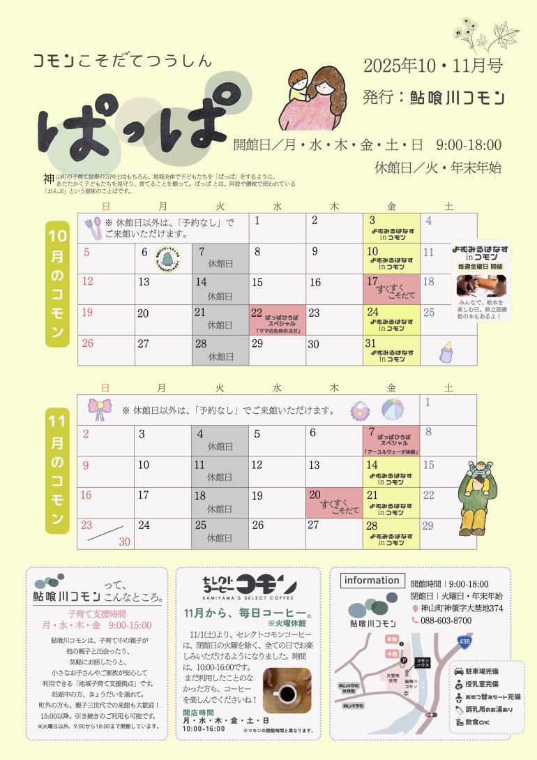 日に日に秋の気配が深まっているコモンから。10月11月の「ぱっぱ」のお知らせをいたします。