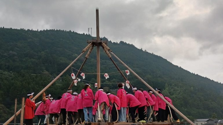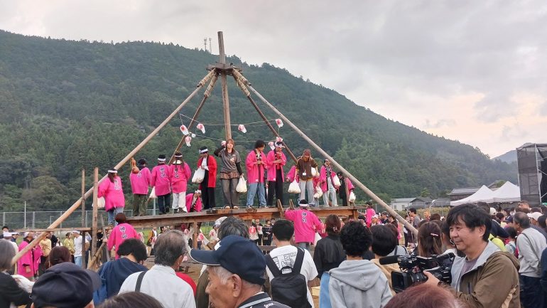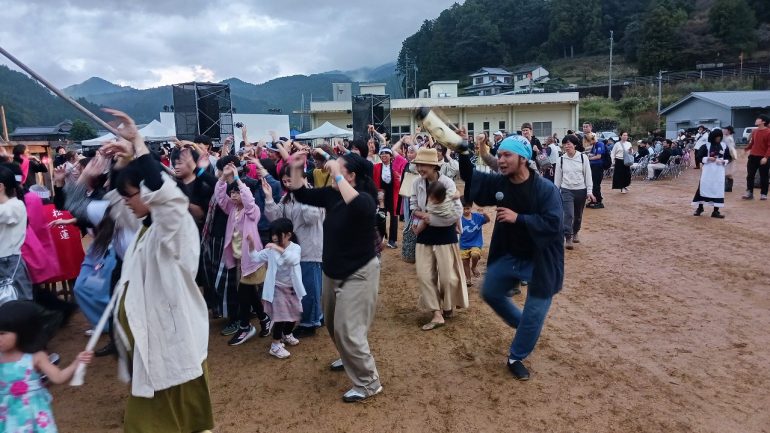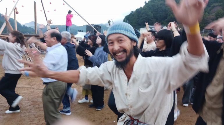 一生懸命、女子学生に「棒づきの音頭」を教えてくれました。