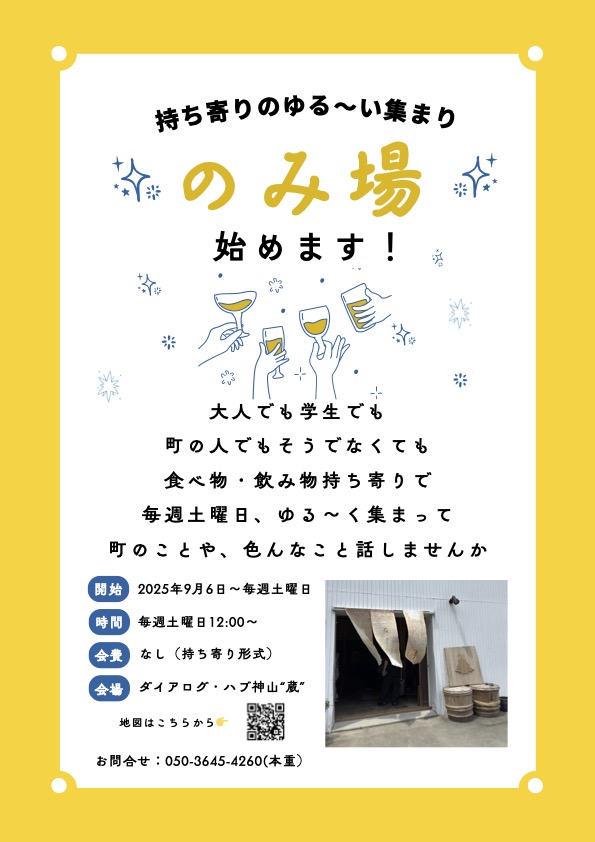 よかったら、土曜日は神山の実家で、みんなでゆる〜く語りましょう。