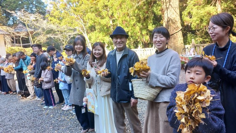 投げられる「花」は「銀杏の葉っぱ
