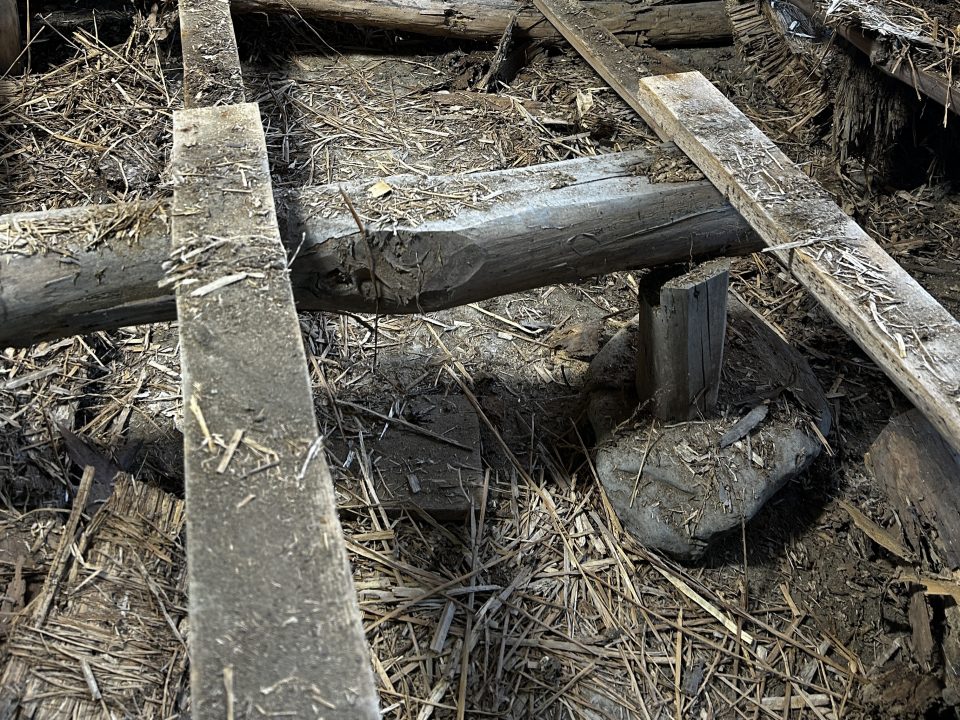 古い家あるある、その辺の川にあるような石によって家が支えられています。はじめて見る人はびっくり!