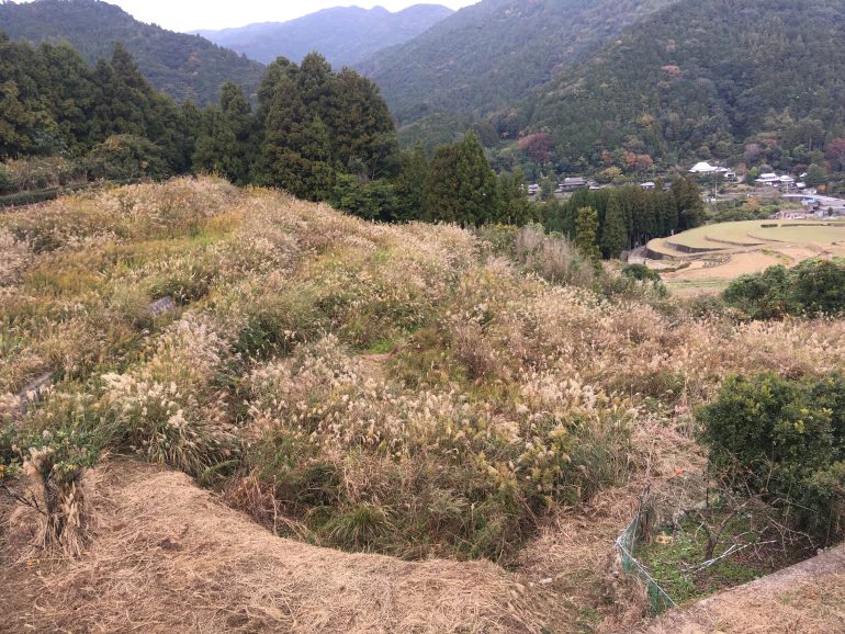 今回実験を行った畑は、数年前までススキに覆われていましたが、毎年刈り取ってコエグロにし、すだち畑などの肥料として使われてきました。