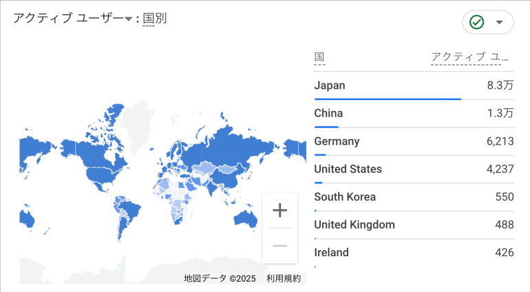 出典:Google アナリティクス アクティブユーザー属性:国別