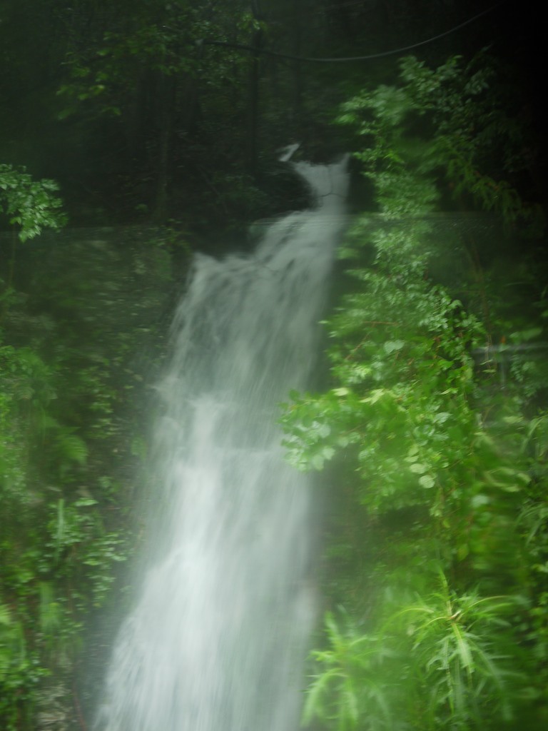 The typhoon probably hit last night although it’s difficult to see where something like this begins. It rained really heavy last night and the wind was blowing. It’s still raining heavy but it’s less windy. Should we evacuate? It’s crossed my mind. I’ve never had to make a choice like this before! We’ll stick it out. The river is wide here. An old woman said that the worst storm didn’t reach the road. No-one else is evacuating. The little shop is still selling pot noodles, the post office is still selling envelopes. It’s sort of reassuring.