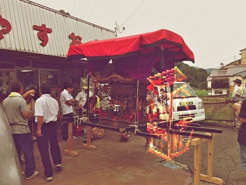 This year I got an invitation to participate in the summer festival – to help carry a god around Yorii in a portable shrine. It was a god of fungi, bracket fungi to be perfectly honest. The portable shrine was large, heavy, wooden, ornate. Old. It was difficult for 8 men to carry. Every now and again we lifted the omikoshi into the air and shook it around to make the god inside chuckle. He enjoys a bit of a shake because it can get very boring being stuck inside a shrine all year, peeping at people praying at you. The guys from Yorii are particularly vigorous and the god had a lot of fun. I had a lot of fun too. Standing a good few inches taller than the other men at the shoulder meant I frequently took the entire weight of the Omikoshi (but it was impossible for me to carry it so I had to find another way to hold it. The way I did it was probably really awkward but anyway, you do what you can). We stopped for beer or soft drinks every 50 metres or so. People came out of their houses with money gifts. It was hot and sweaty. I heard a man rasping, his breath all raggedy. Another man commented on someones ‘kintama’. He asked ‘Are your balls OK? Your trousers look very tight.’ At the end of it all, the fungi god went back home and the omikoshi got taken to pieces and put back in the shed.