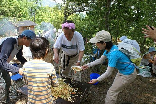 Food tastes great when you’re up in the mountains surrounded by the beautiful bright green new leaves of May. We also ate some delicious seasonal greens: tsukushi and itadori.