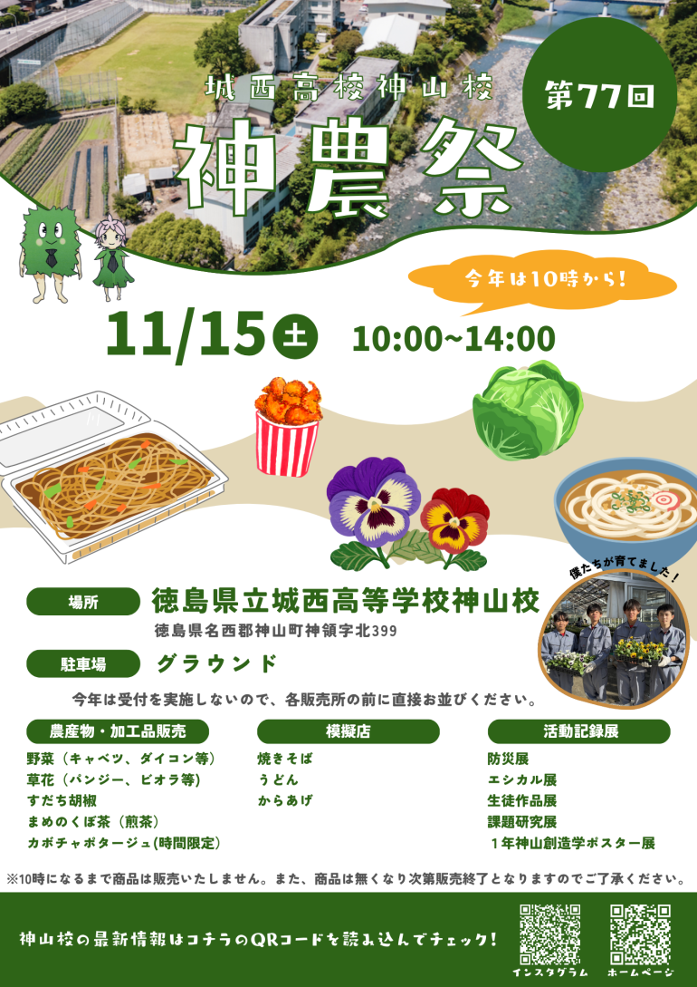 また模擬店では、うどんと焼きそばに神山校の「すだち胡椒」を使用したからあげとメニューが充実しています!