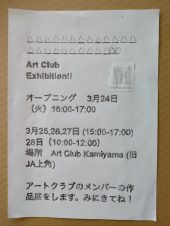 Art Club Kamiyama の冬学期(そして最初の学期)の締めくくりとして、作品展を開催いたします。