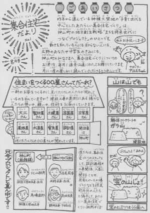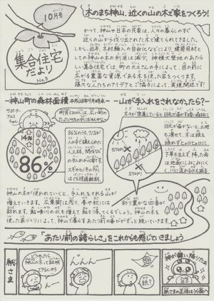神山町の皆さんへ、大埜地の集合住宅づくりについてのお便りを、2017年8月から2018年7月まで毎月1通、全12通にわたってお贈りしてきました。こちらの日記帳から、担当執筆者の思いもご一読ください。