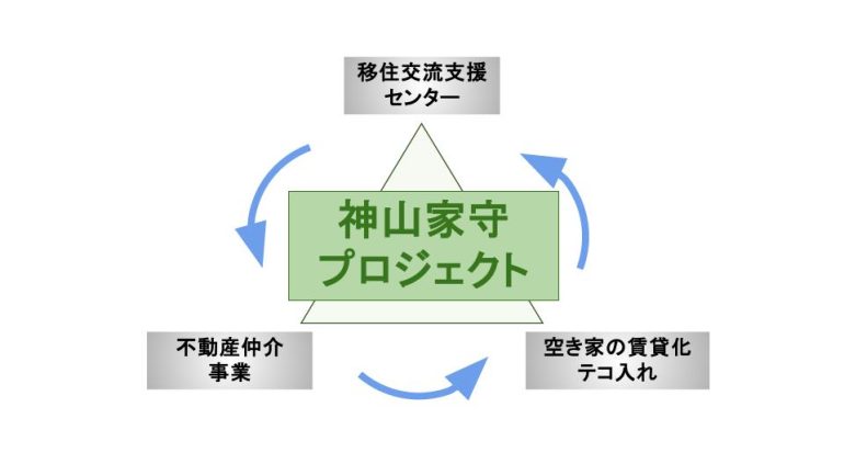 まちづくりの世代交代に直面するなかで、①移住交流支援センター、②不動産仲介、③空き家の賃貸化、この3本の柱を「神山家守プロジェクト」と題して再構築し、地域に根ざした空き家活用・移住支援の未来を、世代を超えて描いていこうと活動奮闘中です。